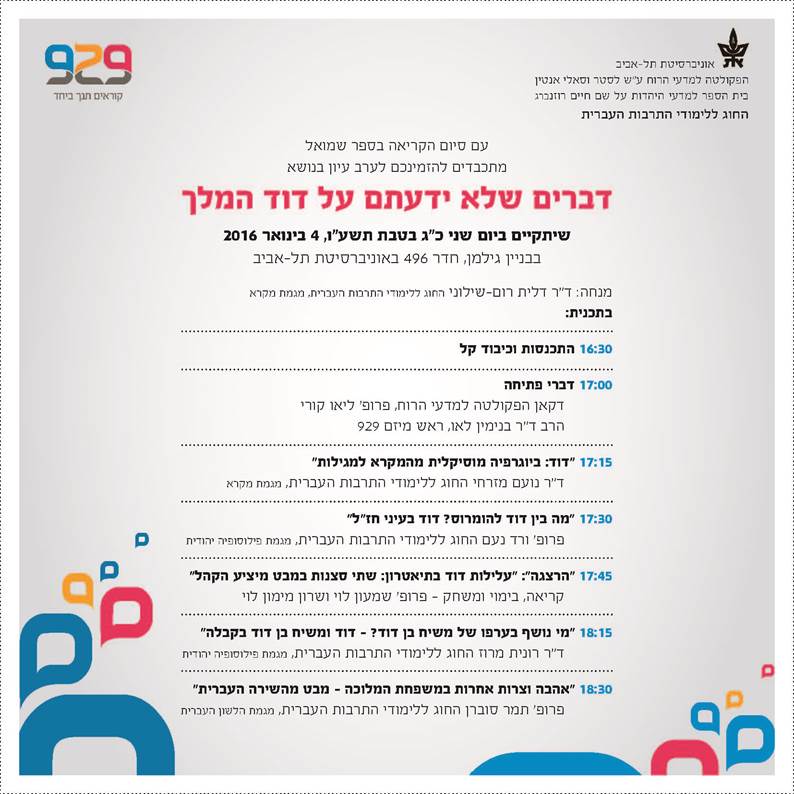 החוג ללימודי התרבות העברית מזמין אתכם עם סיום הקריאה בספר שמואל לערב עיון בנושא: